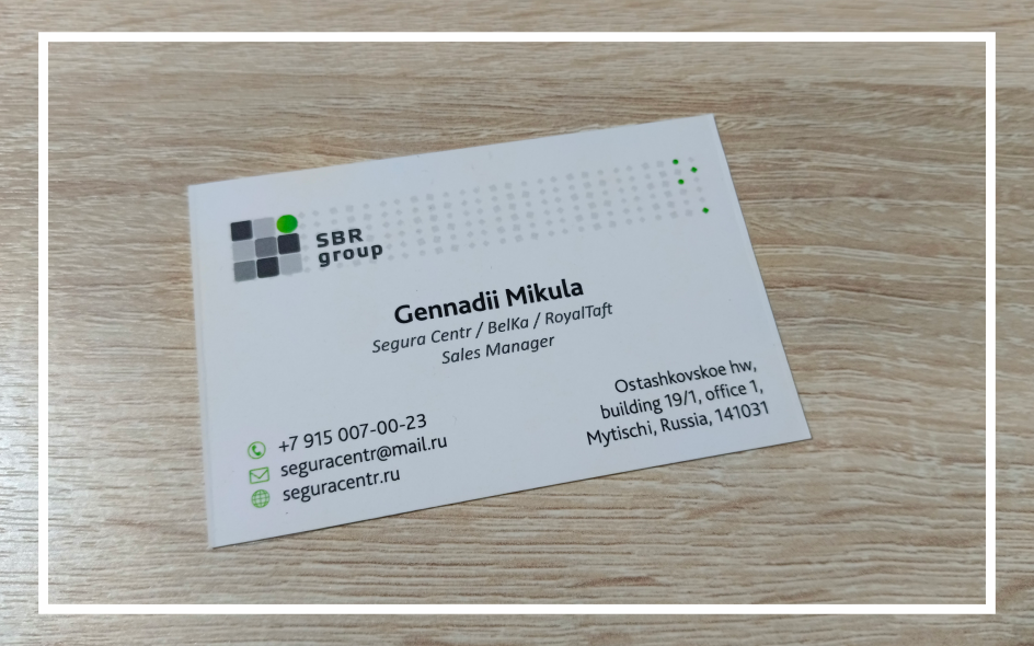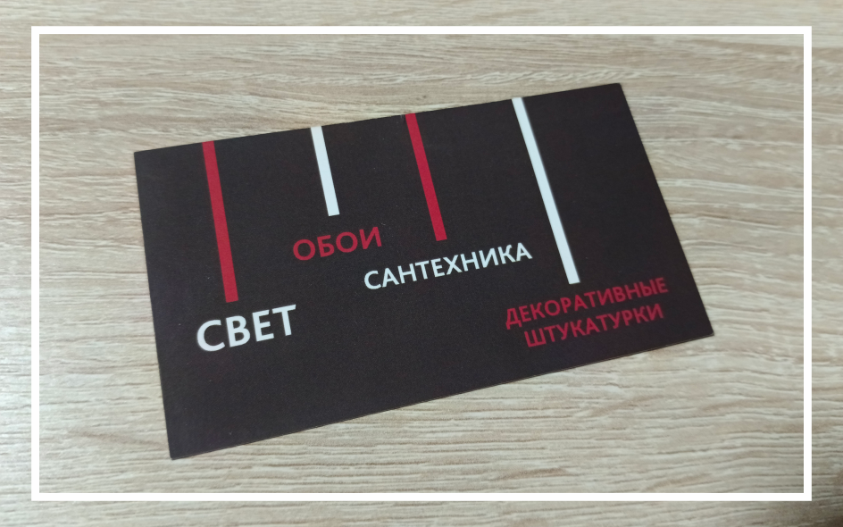 Матовая ламинация создает нескользящую поверхность и убирает блики, приглушает яркие цвета, делая визитку стильной и консервативной.
